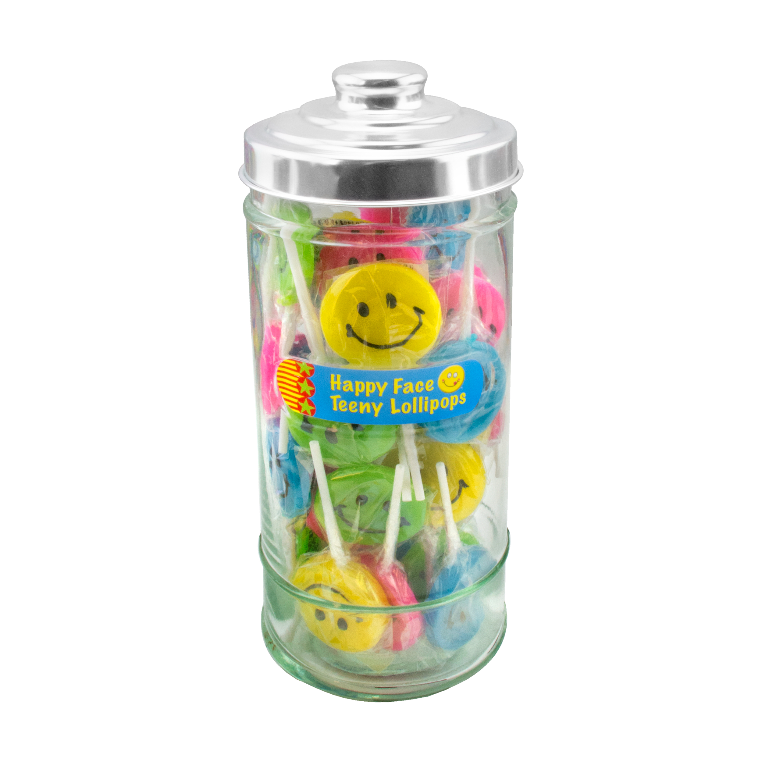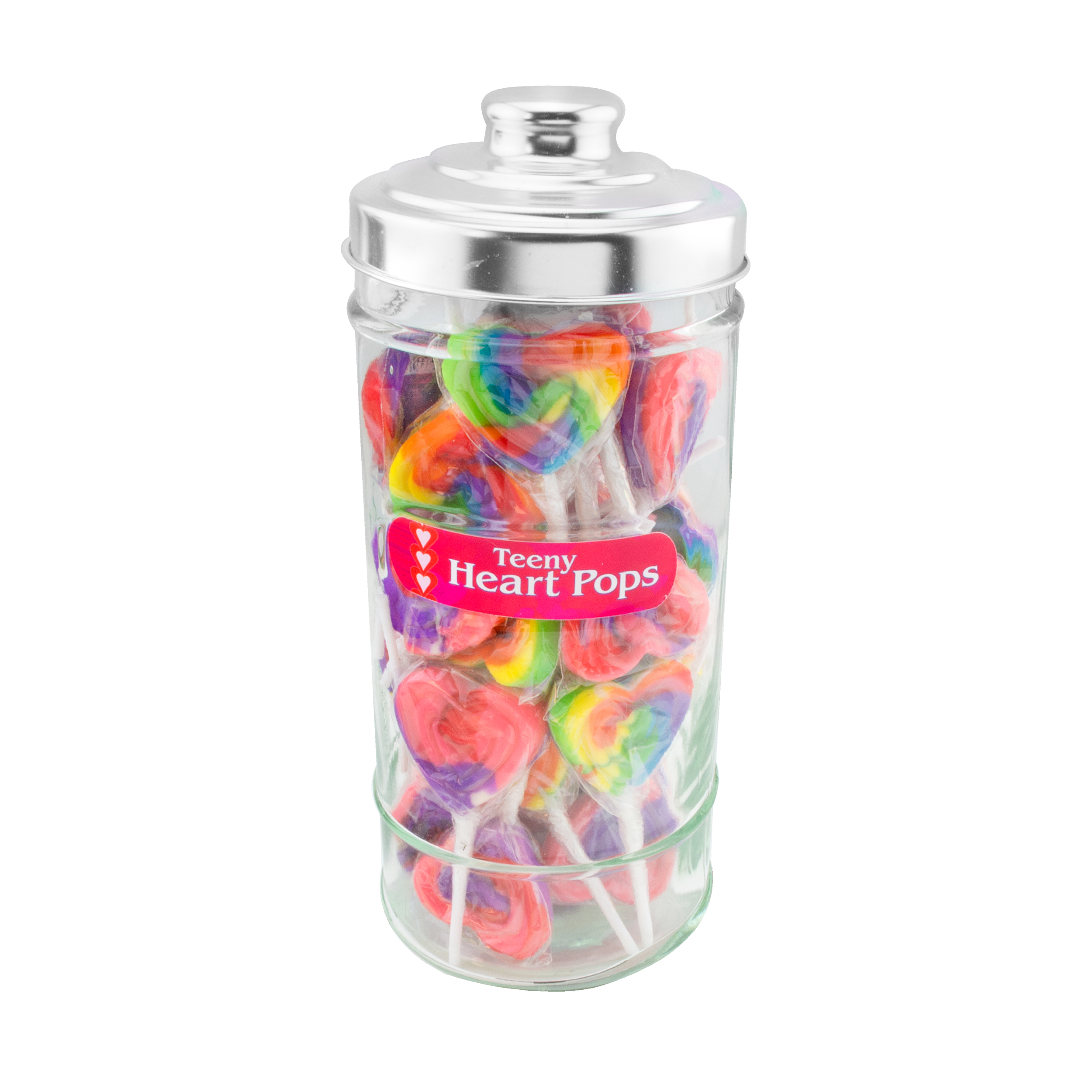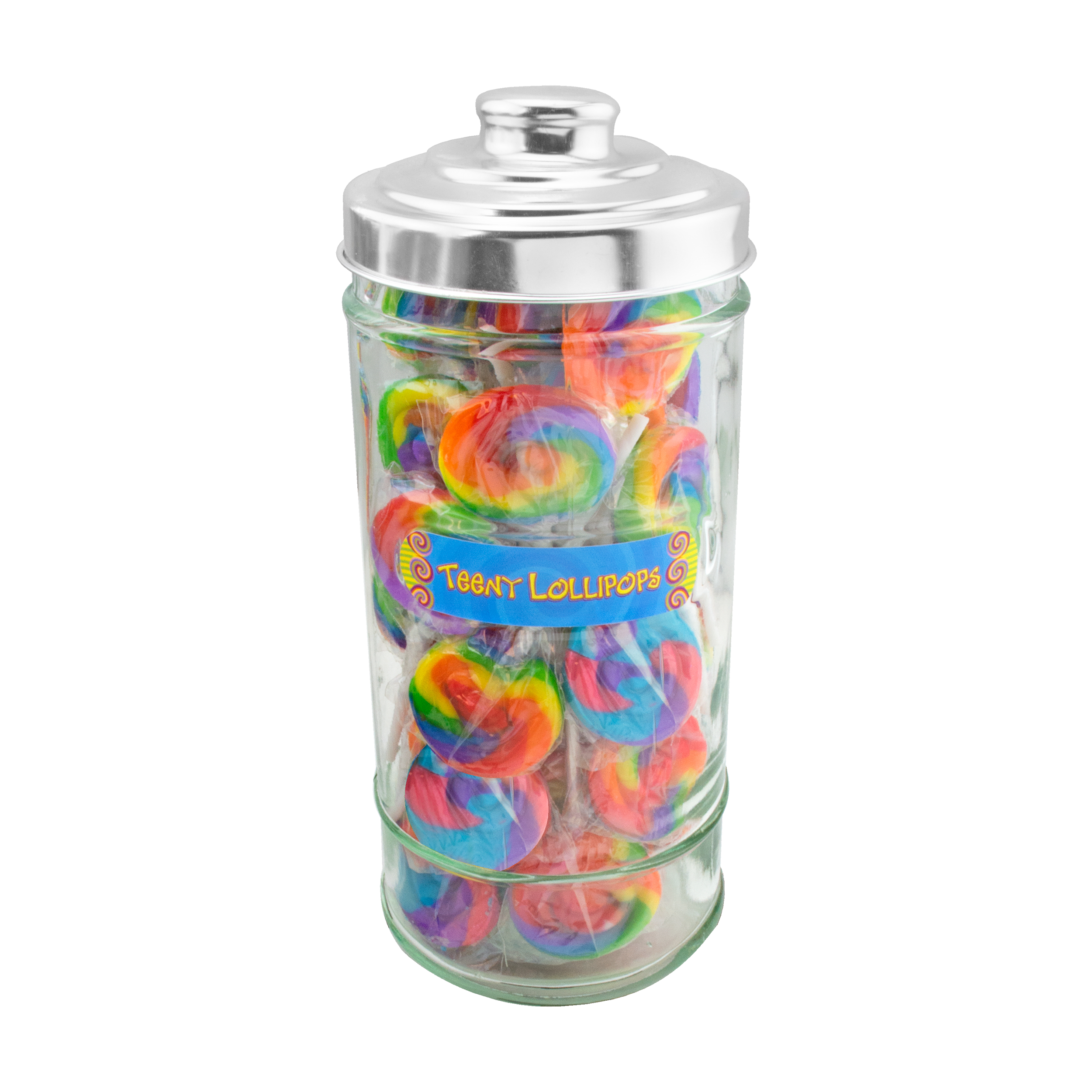 These beautiful glass jars add a touch of nostalgia to every store and create a colorful and organized display of Teeny Lollipops for customers to easily grab for impulse purchases. Includes label to match the candy you choose and metal lid.
