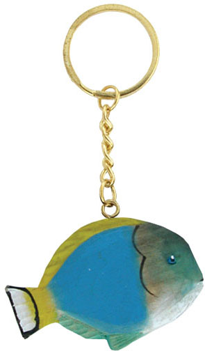 Tropical Fish Carved Wood Key Chain